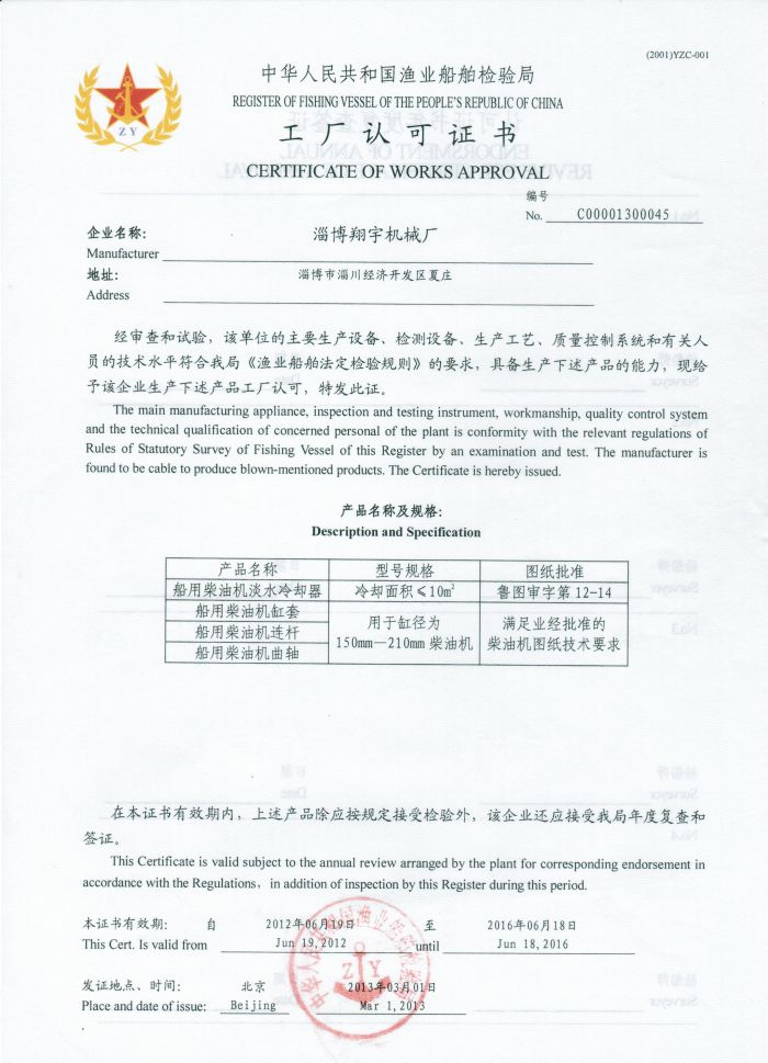 工厂认可证书