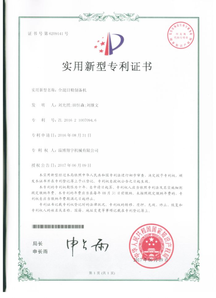 Utility model patent certificate