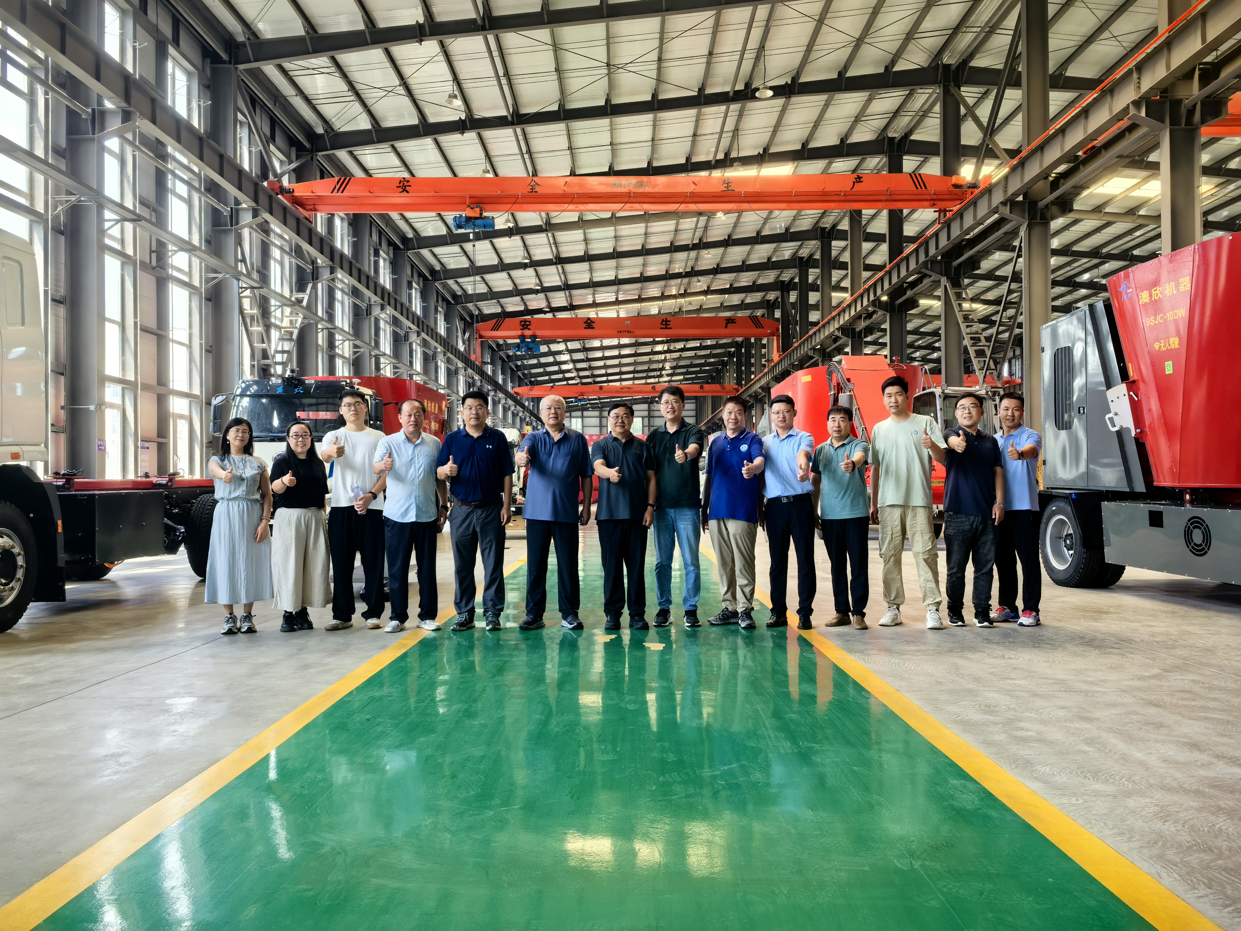 专家团队先后参观了澳欣公司TMR制备机、燃油动力撒料车及自走式TMR、电动无人驾驶撒料车及车载式TMR、饲喂控制系统等设备生产车间和现场。